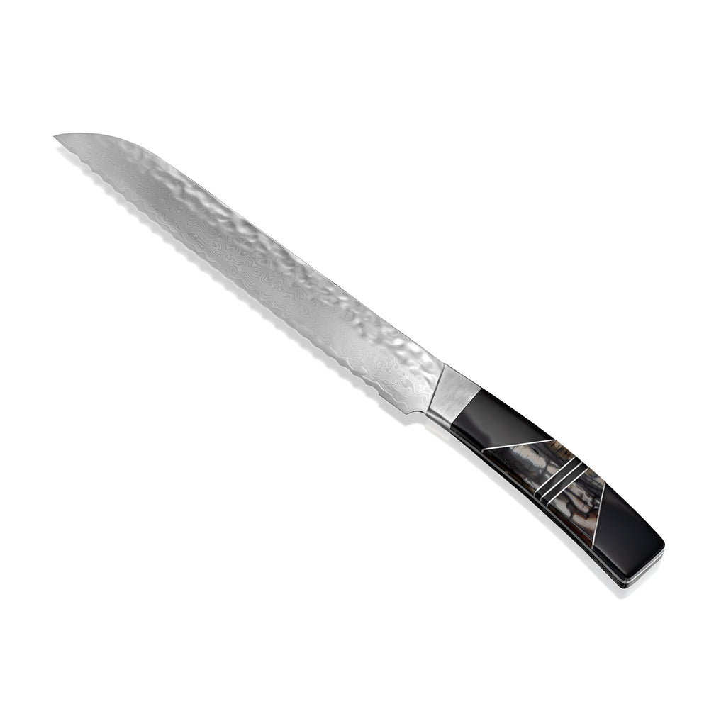 Hammer Damascus 9" Bread Knife with Fossilized Mammoth Tusk Handle