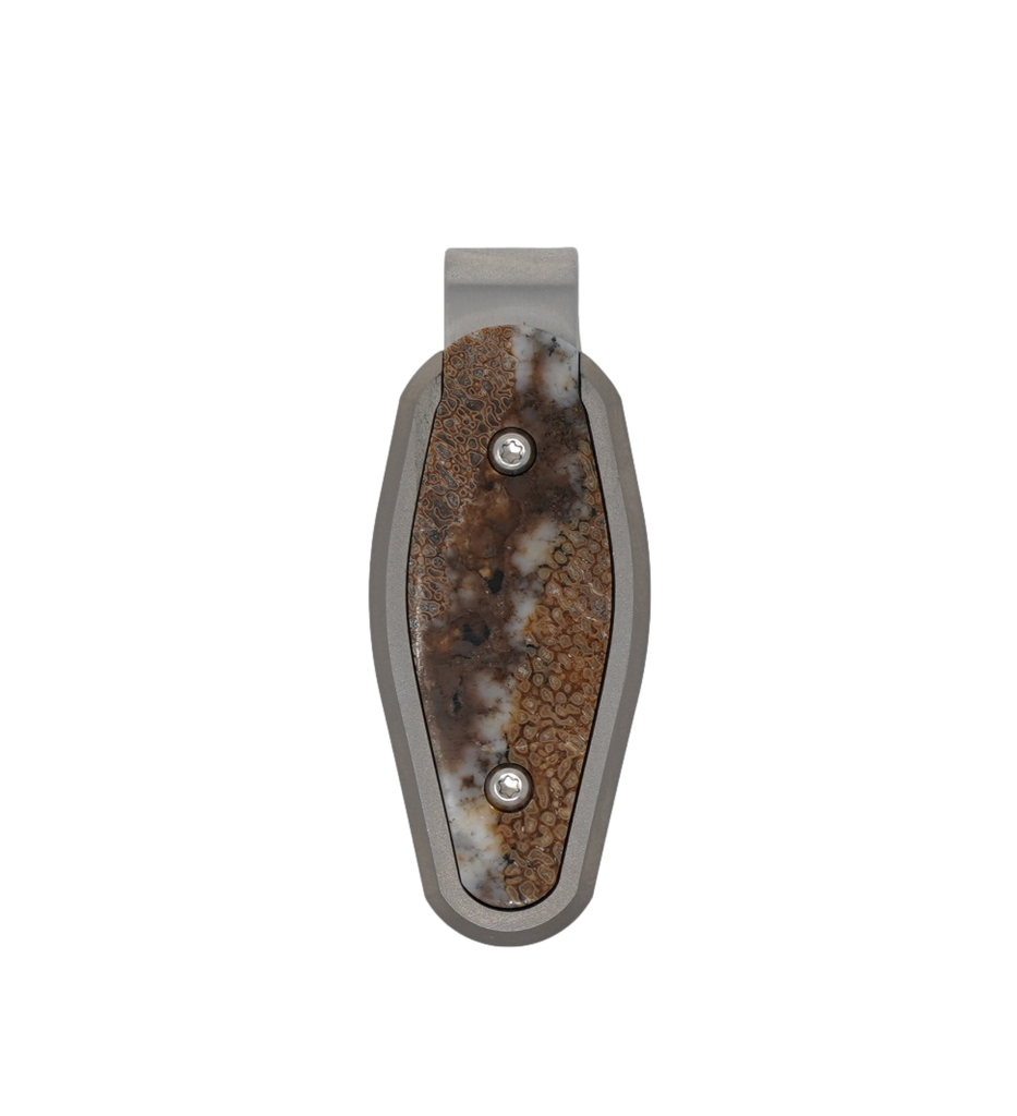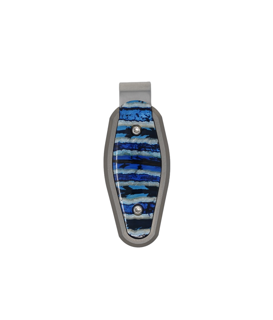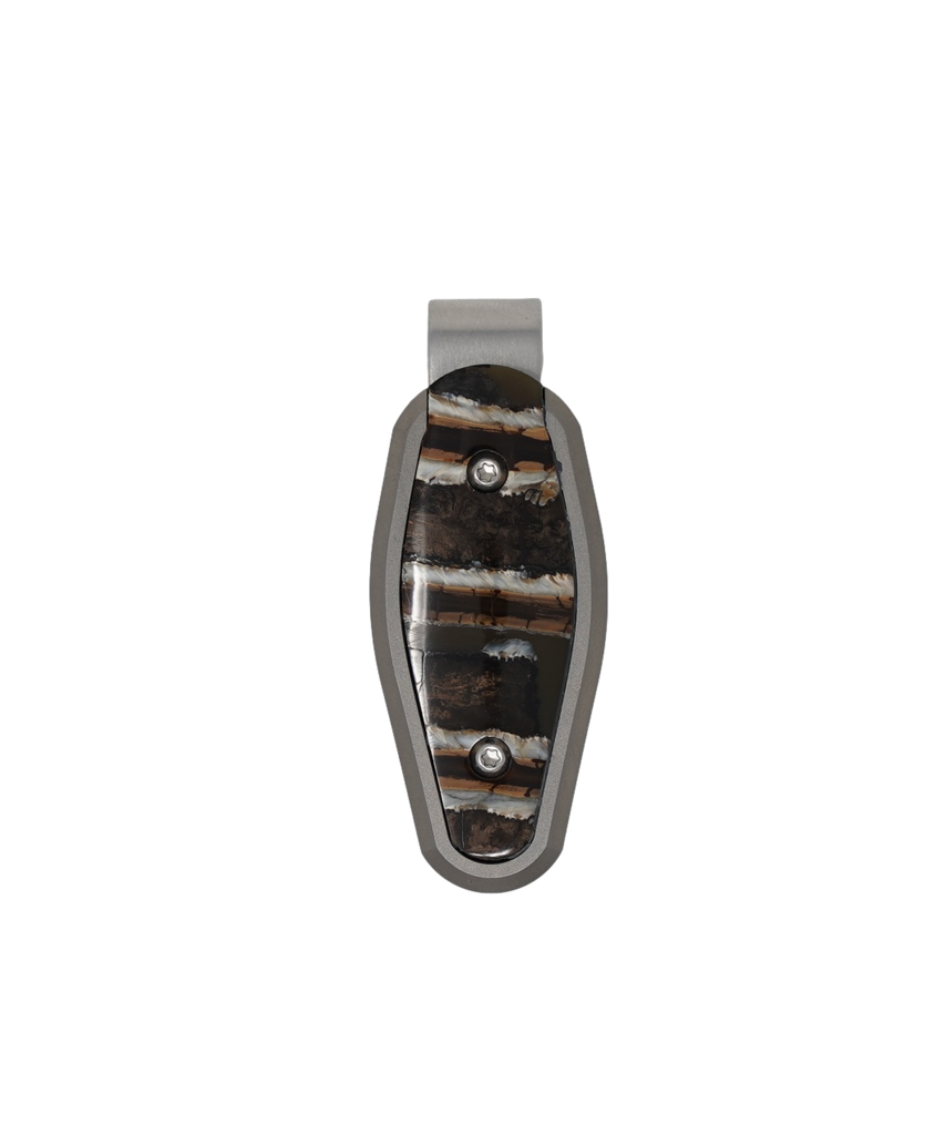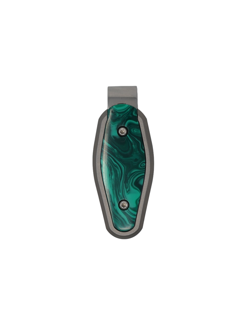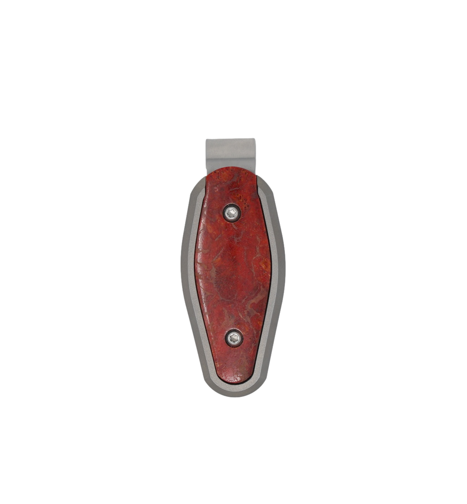 Our totally re-designed Money Clip features Solid CNC machined Titanium frame with a stainless clip. The shape of the frame is an original in-house design to match with our current Titanium knives. The handles are CNC machined to be screwed on "no glue" and every piece is hand shaped and polished. We are confident this money clip is so cool you will want to carry cash again with you Cards.