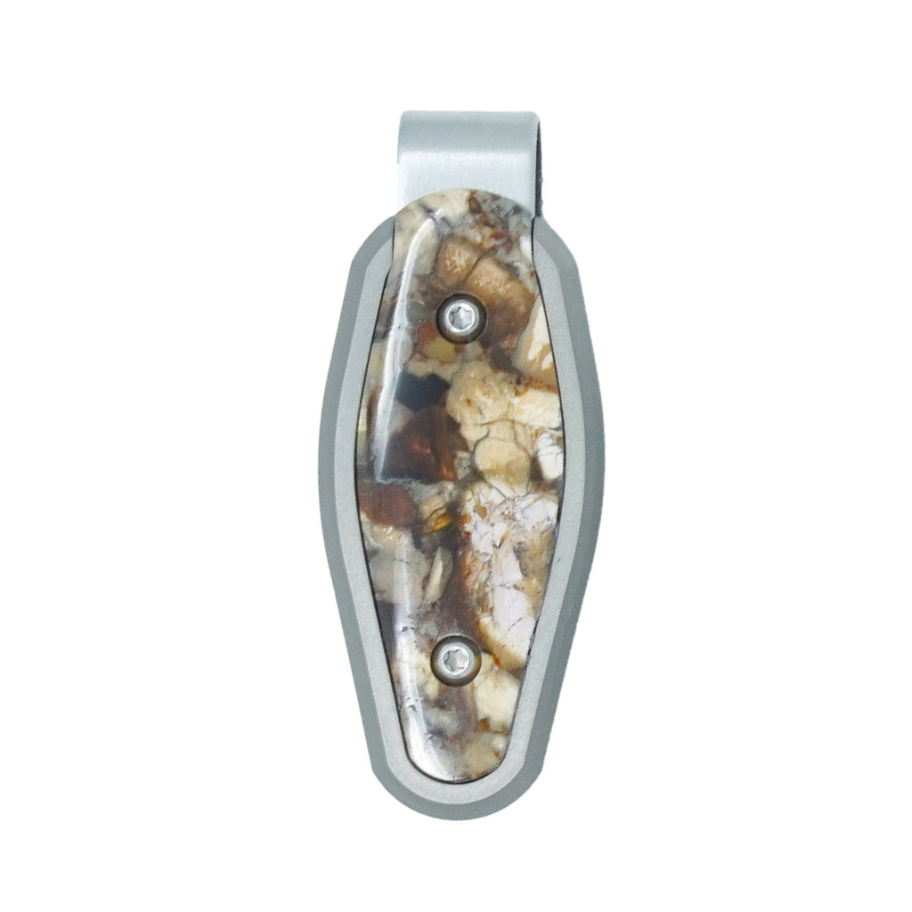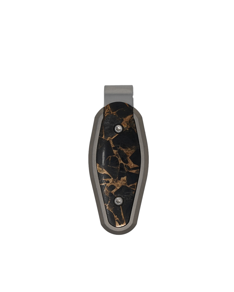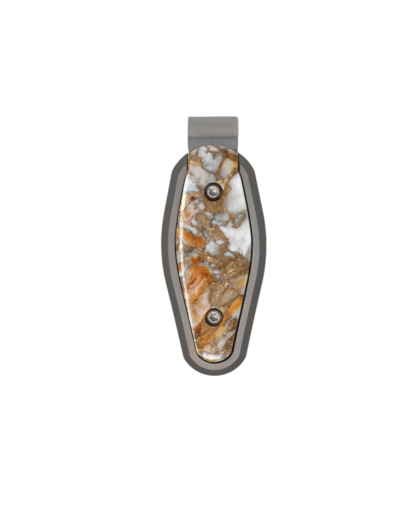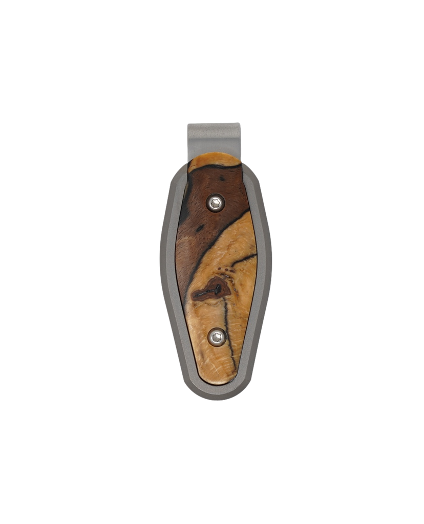 Our totally re-designed Money Clip features Solid CNC machined Titanium frame with a stainless clip. The shape of the frame is an original in-house design to match with our current Titanium knives. The handles are CNC machined to be screwed on "no glue" and every piece is hand shaped and polished. We are confident this money clip is so cool you will want to carry cash again with you Cards.