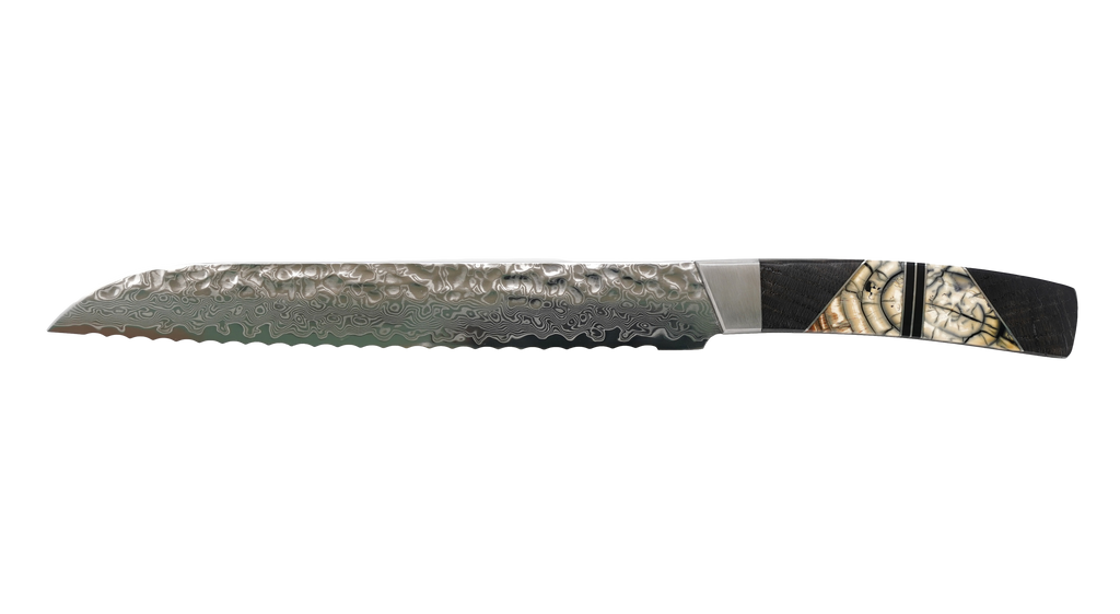 Elevate your kitchen with the unparalleled style and functionality of the Santa Fe Stoneworks Hammer Damascus Bread Knife. Perfect as a gift or a timeless addition to your culinary tools.