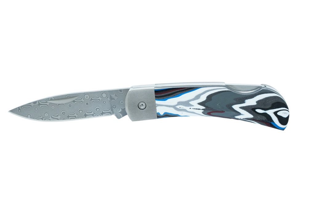 Titanium bolster Damascus 3" Lock Back Fordite Collection